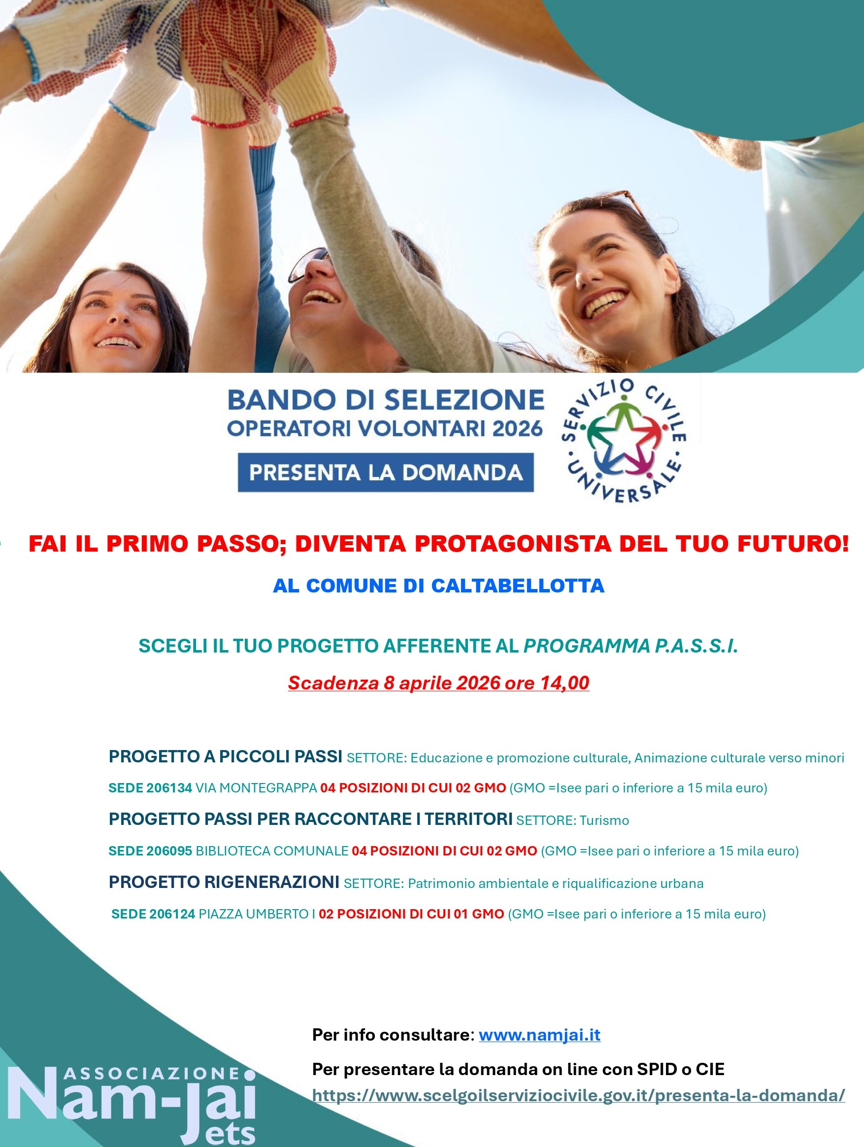 Bando di selezione operatori volontari 2026 servizio civile universale-scadenza 8 aprile 2026 ore 14.00